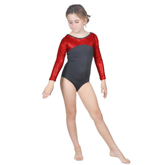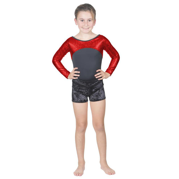 Long Sleeve Red Pebble Leotard w. Black Soft Short