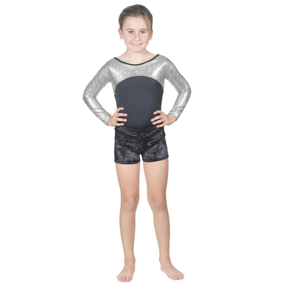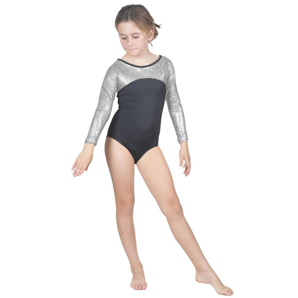Long Sleeve Silver Pebble Leotard w. Black Soft Short