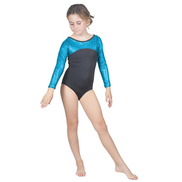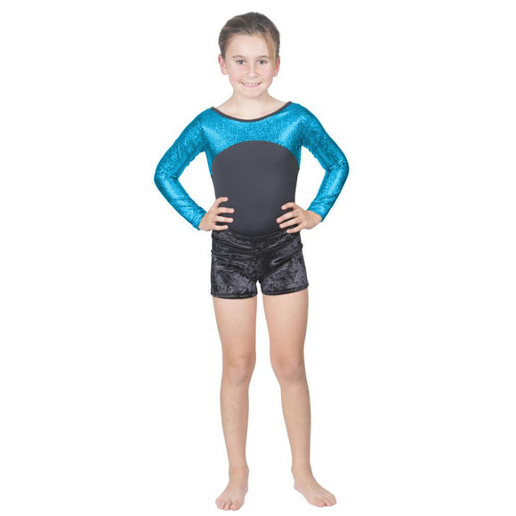 Long Sleeve Turquoise Pebble Leotard w. Black Soft Short