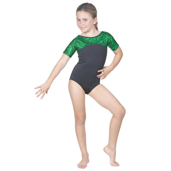 Short Sleeve Competition Leotard Green Pebble Hologram