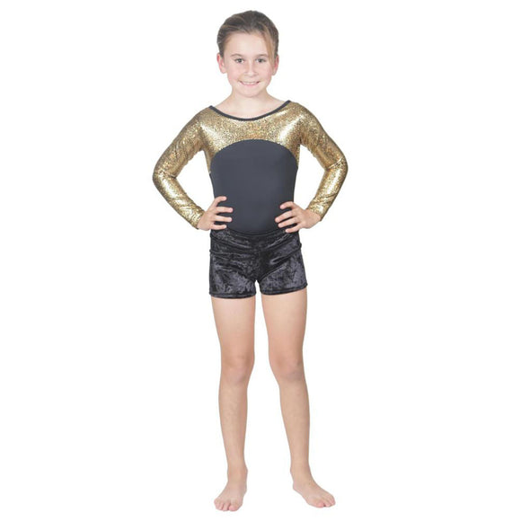 Long Sleeve Gold Pebble Leotard w. Black Soft Short