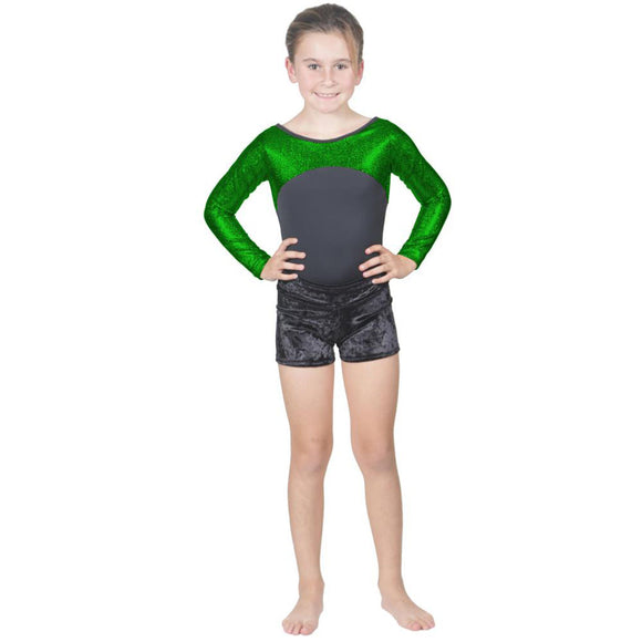 Long Sleeve Green Pebble Leotard w. Black Soft Short