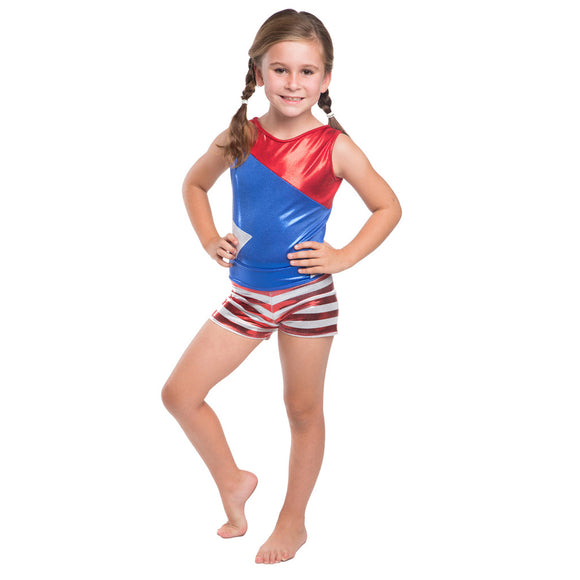 Tri-Tone Long Sleeve Patriotic Metallic Leotard