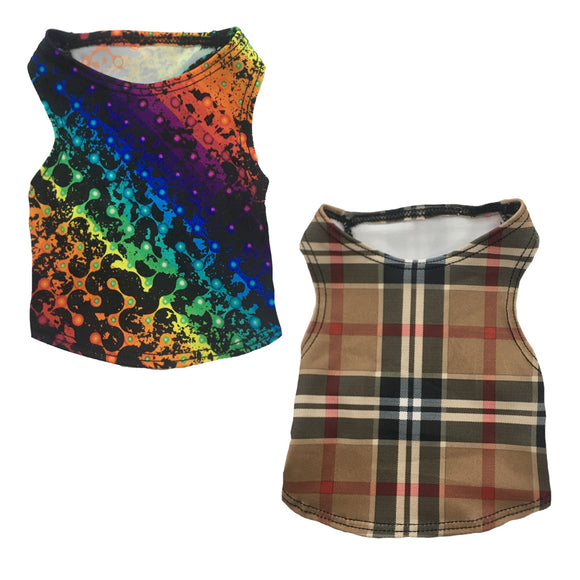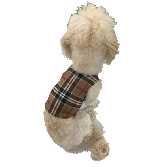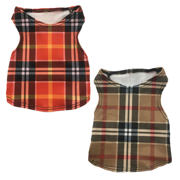 Set of 2 Small Breed Dog Tank-Tan Plaid/Pride