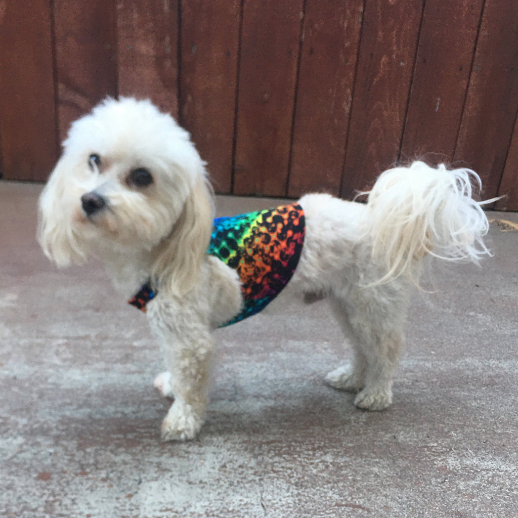 Stretch tank that fits small breed dogs 4-9lbs. Super cute, your best buddy won't want to take it off. Fully washable.