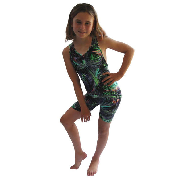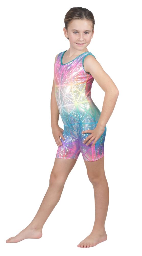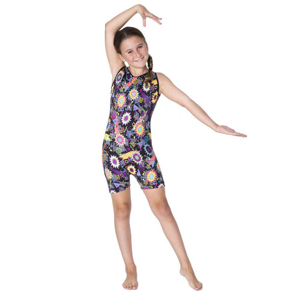 Mosaic Print Girls Sleeveless Unitard for Gymnastics