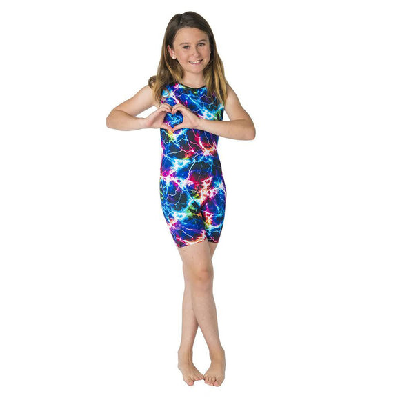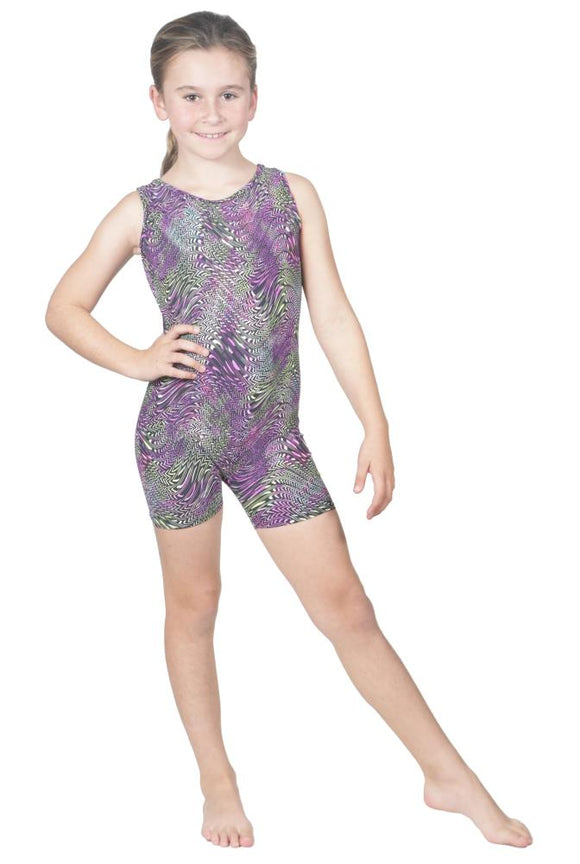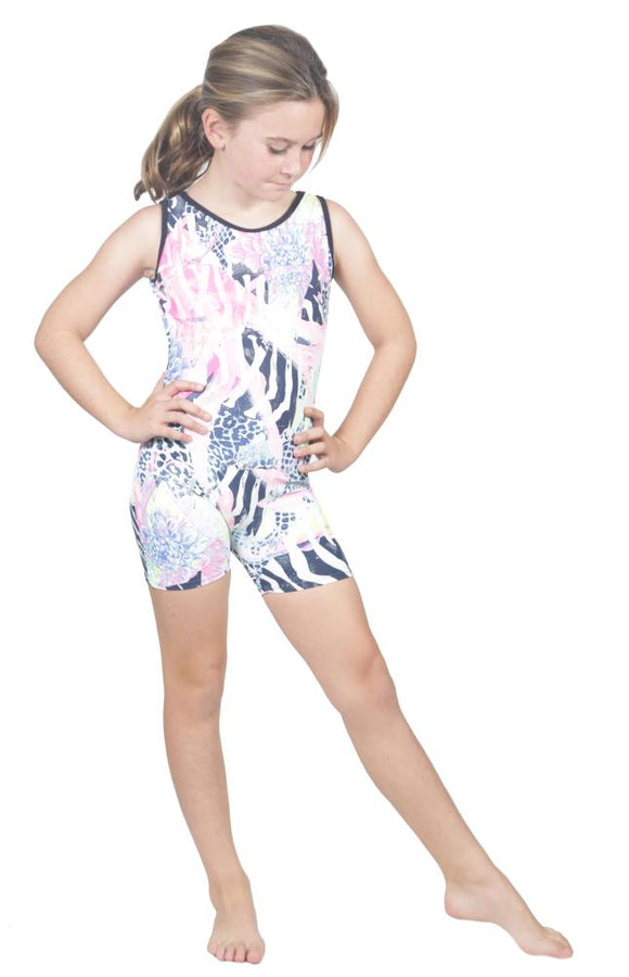 Multi Zebra Girls Sleeveless Unitard for Gymnastics
